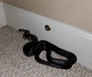Eastern Rat Snakes, also known as the Black Rat Snake, is the most common species of snake in Virginia, and one of the most common species you might find in your yard or home. Eastern Rat Snakes are large, black snakes with a white belly that typically are about 3.5 to 6 feet long, or 42 inches to 72 inches long. Due to their formidable size, Eastern rat snakes can be very frightening to spot slithering around your yard, but don’t worry-these snakes are harmless. Eastern Rat Snakes are non-venomous, and actually one of the most helpful snakes to have in your yard, as their diet consists mainly of pests you don’t want near your home, like rats, mice, moles and insects. Eastern Rat Snakes are also known to eat amphibians and smaller birds. Eastern Rat Snakes are arboreal, so they will often be spotted inside attics, looking for prey like rats. While Eastern Rat Snakes are totally harmless and do not pose a threat or even a nuisance to humans, you still would not want them hanging out in your attic. A licensed wildlife removal company like Summit Wildlife Removal can safely remove and relocate the snake, as well as install exclusions on the entry points and offer pest control treatments to keep the snake’s food population away from your home.